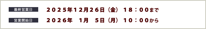 | 年末年始休業期間中にお問い合わせいただいたご質問は、1月5日(月)より順次対応します。